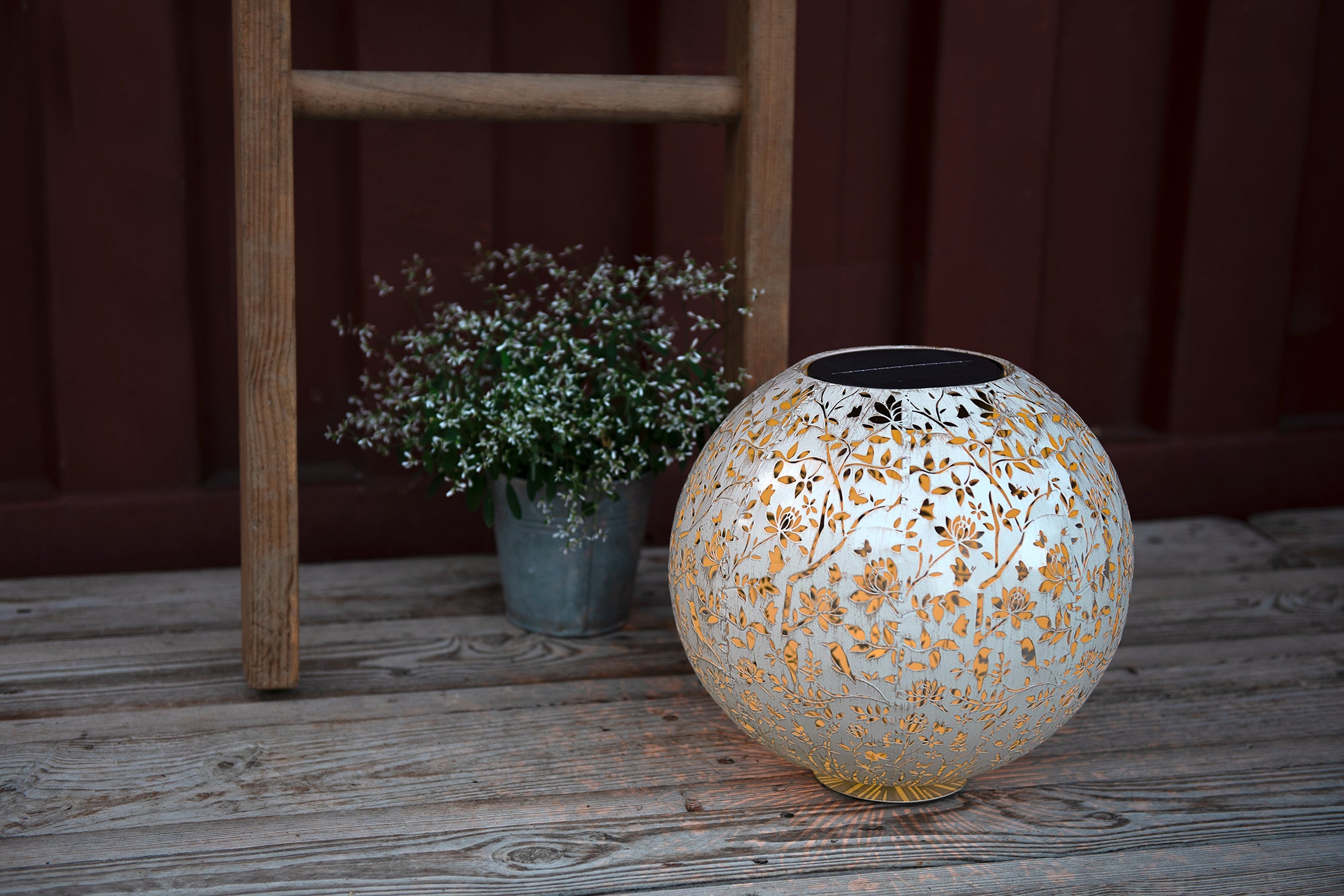 Besonders praktisch, wenn keine Steckdose in der Nähe ist: Unserer Leuchten sind solarbetrieben. Die Panels laden sich tagsüber auf und schalten bei Dämmerung selbstständig ein. Stöbern Sie durch unsere wunderschönen Solarlaternen und lassen Sie sich verzaubern. Viel Spass beim Entdecken.